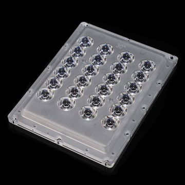 LENTE EM POLICARBONATO DE ALTA TRANSMITÂNCIA, DIMENSÕES 135x100MM, PARA 24 LEDS 5050 FLAT PACKAGE, COM 30° DE ABERTURA MÉDIA DO ÂNGULO DE FACHO, TEMPERATURA DE OPERAÇÃO MÁXIMA 120 °C, RESISTENTE A RAIOS UV, RESISTENTE A IMPACTOS IK >08, VEDAÇÃO CONTRA PARTÍCULAS SÓLIDAS DE ÁGUA GRAU IP66
