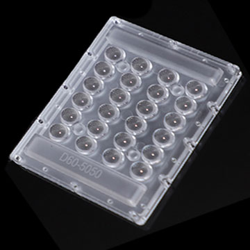 LENTE EM POLICARBONATO DE ALTA TRANSMITÂNCIA, DIMENSÕES 135x100MM, PARA 24 LEDS 5050 FLAT PACKAGE, COM 60° DE ABERTURA MÉDIA DO ÂNGULO DE FACHO, TEMPERATURA DE OPERAÇÃO MÁXIMA 120 °C, RESISTENTE A RAIOS UV, RESISTENTE A IMPACTOS IK >08, VEDAÇÃO CONTRA PARTÍCULAS SÓLIDAS DE ÁGUA GRAU IP66