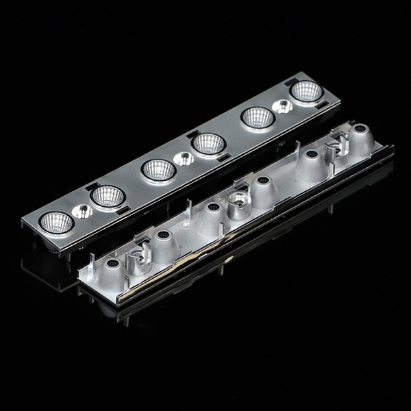 REFLETOR EM POLICARBONATO METALIZADO, DIMENSÕES 149X25MM, ABERTURA MÉDIA DO ÂNGULO DE FACHO DE 12º , P/ 06 LEDs SMD