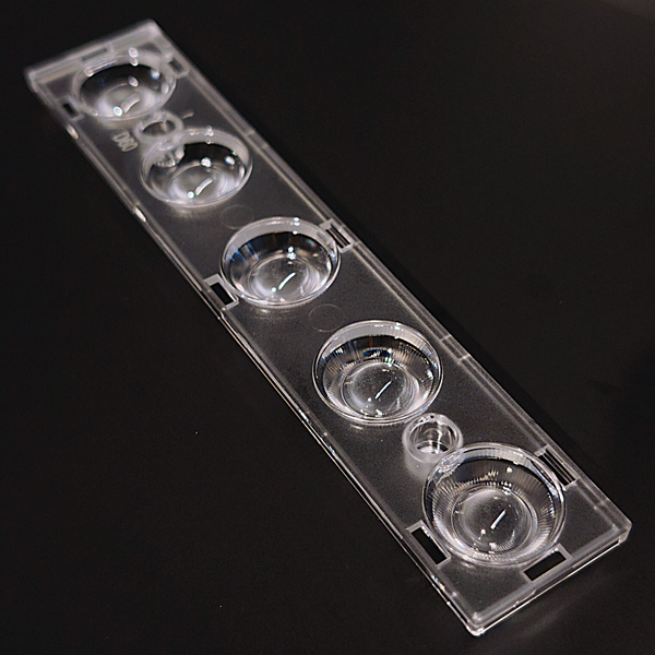 LENTE EM PMMA, DIMENSÕES 149×29,4MM, ABERTURA MÉDIA DO ÂNGULO DE FACHO DE 60º , P/ 05 LEDs SMD 5050 OU 20 LEDS SMD 3030