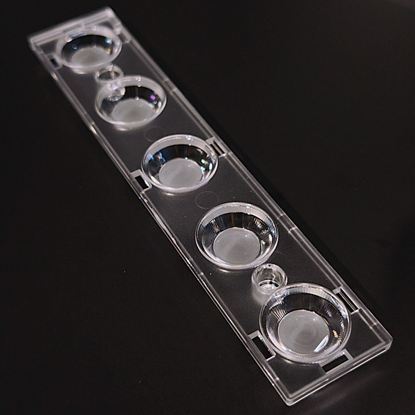 LENTE EM PMMA, DIMENSÕES 149×29,4MM, ABERTURA MÉDIA DO ÂNGULO DE FACHO DE 80º , P/ 05 LEDs SMD 5050 OU 20 LEDS SMD 3030