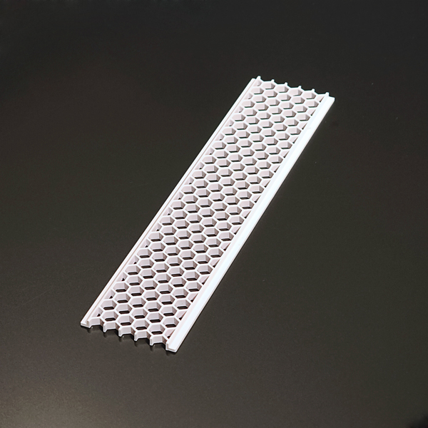 MOLDURA ANTI OFUSCAMENTO EM POLICARBONATO COM GRELHA TIPO HONEY COMB, DIMENSÕES 15X35MM, COR BRANCA