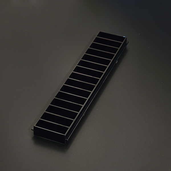 MOLDURA ANTI OFUSCAMENTO EM POLICARBONATO COM ALETAS PLANAS, DIMENSÕES 15X35MM, COR PRETA