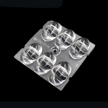 LENTE EM POLICARBONATO DE ALTA TRANSMITÂNCIA, DIMENSÕES 50x50MM, PARA 6 LEDS 5050 FLAT PACKAGE, COM 160°x80° DE ABERTURA MÉDIA DO ÂNGULO DE FACHO, CLASSIFICAÇÃO IESNA TII-M CUT-OFF, TEMPERATURA DE OPERAÇÃO MÁXIMA 120ºC, RESISTENTE A RAIOS UV
