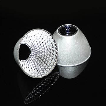 REFLETOR EM POLICARBONATO COM DIÂMETRO DE 75MM, COM APLICAÇÃO DE ALUMÍNIO DE ALTA PUREZA E ALTA REFLECTÂNCIA POR PROCESSO A VÁCUO, ABERTURA MÉDIA DO ÂNGULO DE FACHO MULTIFACETADA DE 60° DE FACHO MÉDIO, PARA LEDS COB