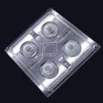 LENTE EM POLICARBONATO DE ALTA TRANSMITÂNCIA, DIMENSÕES 90x90MM, PARA 4 LEDS 5050 FLAT PACKAGE, COM 150° DE ABERTURA MÉDIA DO ÂNGULO DE FACHO, CLASSIFICAÇÃO IES, TV TEMPERATURA DE OPERAÇÃO MÁXIMA 120 °C, RESISTENTE A RAIOS UV, RESISTENTE A IMPACTOS IK >08, VEDAÇÃO CONTRA PARTÍCULAS SÓLIDAS DE ÁGUA GRAU IP66